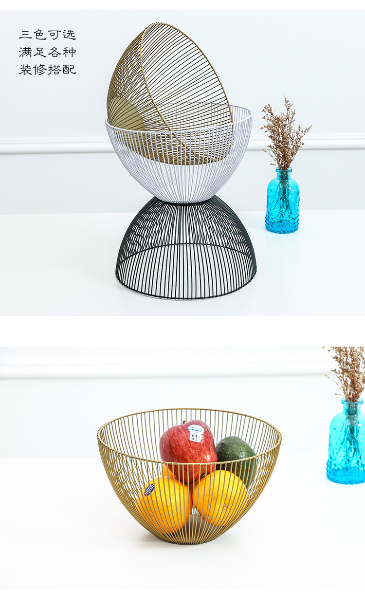 简约欧式客厅水果篮水果盘家用铁艺果盘果盆沥水篮创意家居收纳篮