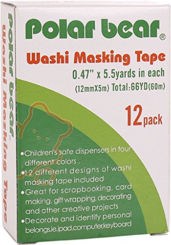 Polar Bear Washi Masking Tape With Cute Dispenser, 0.47"x5.5 Yards each, Pack of 12pcs(total 66 yards), assorted colors,(WT-1255)