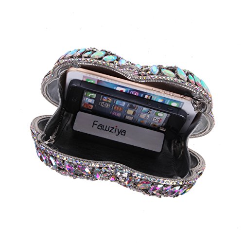 -. Feature : Diamonds:Fawziya use domestic grade A diamonds,12 cutting surface,a long-lasting gloss retention,one of leader in high class diamonds. / Hardware:Fawziya using K Gold plating process,each hardware is carefully selected,no scratches,no rust on the surface. / Fabrics:Fawziya use silk and satin,these materials are light,soft,colorful,shiny,noble and elegant. / The approximate size is 19(L)x5(W)x13(H)cm,Chain: 120 cm long chain removable. / Ideal for holding essentials like keys,mirror for touch-ups, lipstick and a iphone 6.