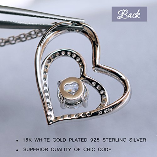 Made from high quality 18k white gold plated 925 sterling silver, you may rest assured that this heart necklace is here to stay. Just keep it away from hot water and perfumes and it will sparkle forever!