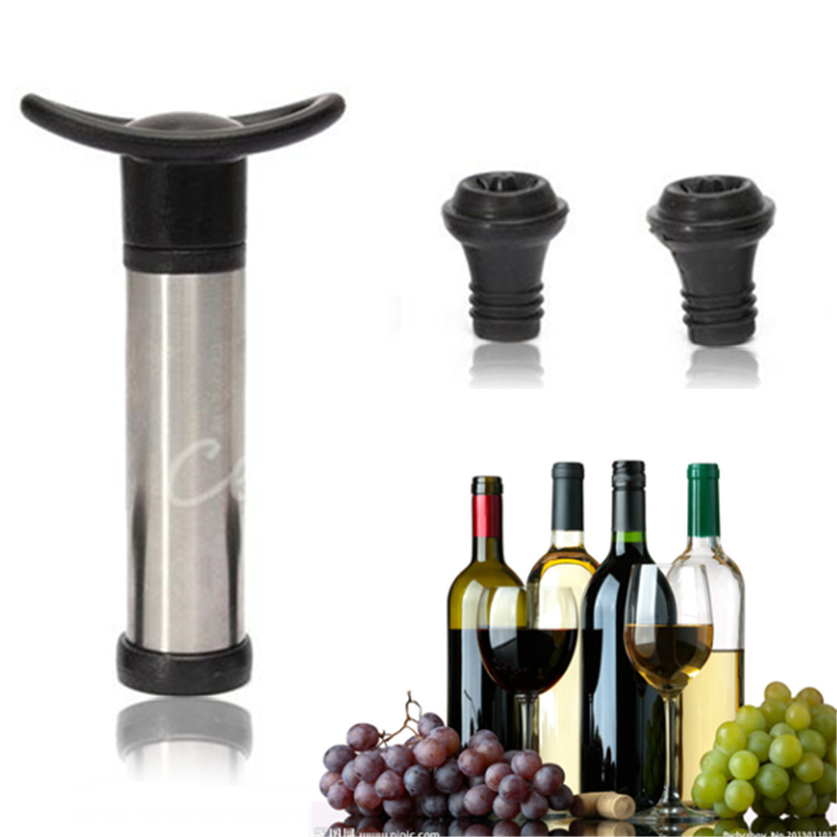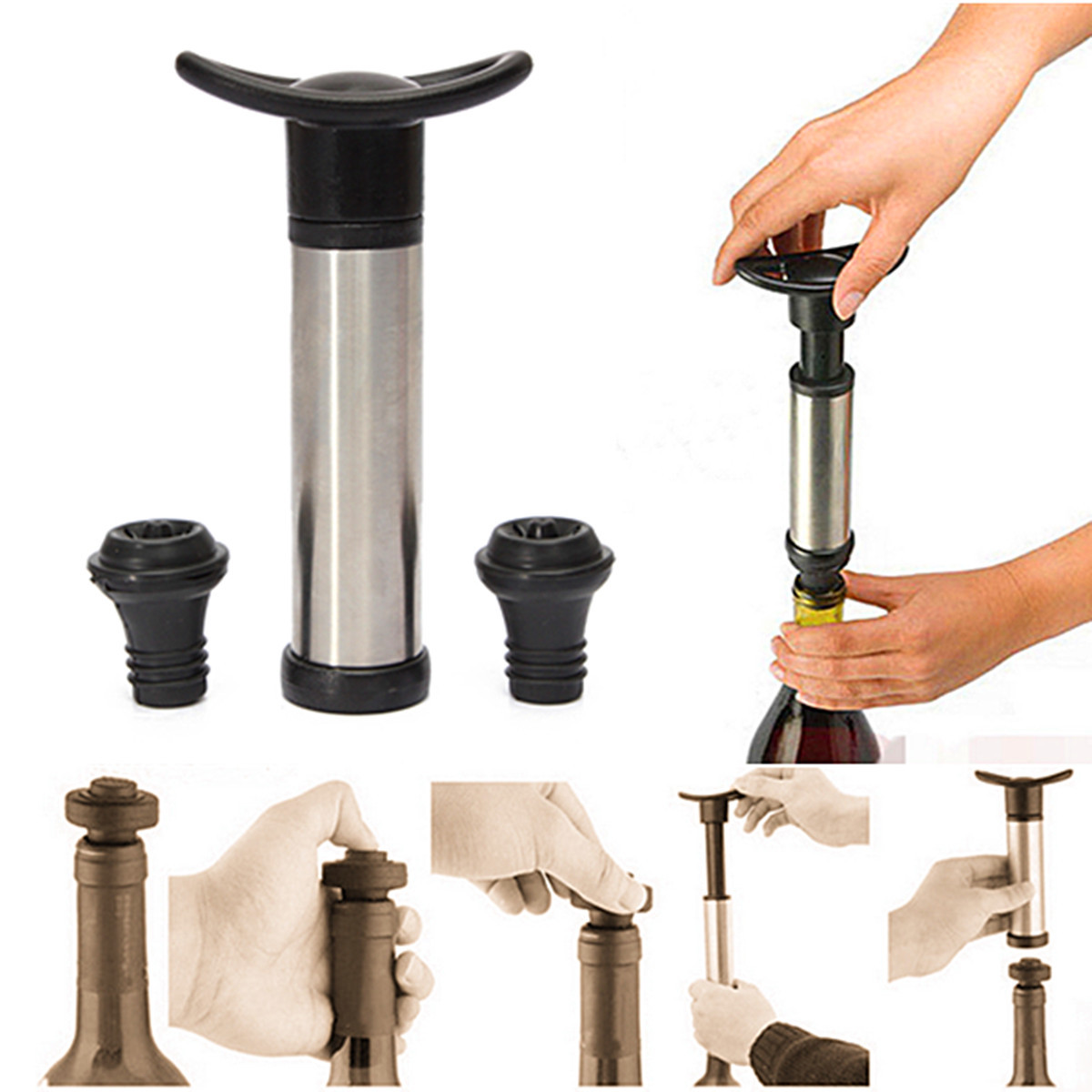Stainless steel vacuum wine stopper kit