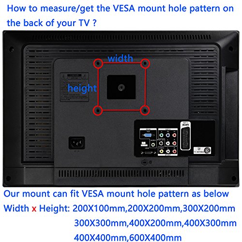 -. Feature : Universal Design: Full-motion wall mount for 37" - 70" flat-panel TVs up to 100lbs / 45 kg, VESA(mounting hole pattern) - compatible faceplate fits VESA 200X100mm (8"x4") 200X200mm(8"x8") 300X200mm (12"x8") 300X300mm (12"x12") 400X300mm (16"x12") 400X400mm (16"x16") 600X400mm (24"x16"). / Optimal Viewing Adjustable: +3°/-10° Tilt, +/-90°Swivel (Maximum swivel angle depends on TV size) and +/-3°rotation for maximum viewing flexibility, to choose the perfect angle to view the screen from anywhere in the room.Post-installation level adjustment allows the TV to level perfectly. / Safe to Use: This heavy-gauge TV mount has high standards, holding 37" - 70" TVs weighing up to 100lbs (45kg), which are tested to hold 4 times the weight they're rated to based on UL standard. / Save Space: Articulating arm retracts 2.8" from the wall in home position to save space, maximum extension 16" from the wall. / Product Includes: Standard mounting hardware, 6 ft HDMI cable, 3-Axis magnetic bubble level, 5 pieces pack of cable ties, and our incredible 5-year warranty and friendly customer service. We provide what you need to make installation as easy and convenient as possible!