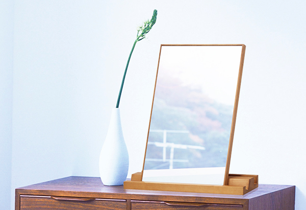 ●ミラーは吊鏡(カベピタ仕様)、二つの溝で角度調節ができる台座はスマホスタンドとしてお使い頂けます。