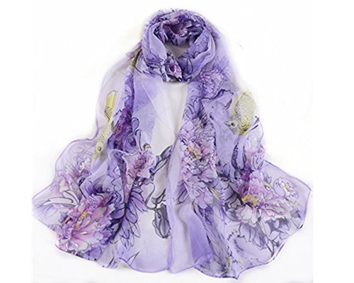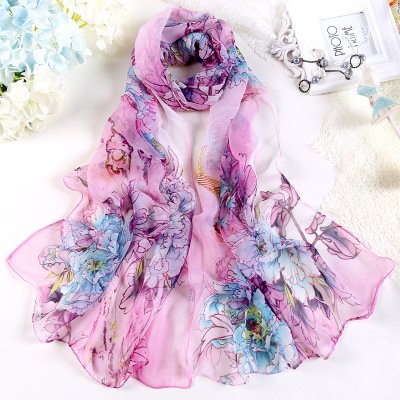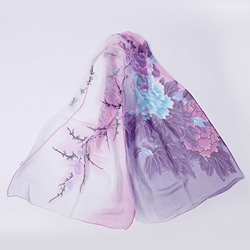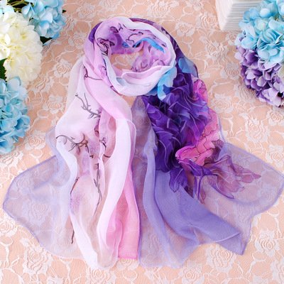 | Fashion Flower Ink Style Soft Silk Voile Scarf Wrap Shawl |