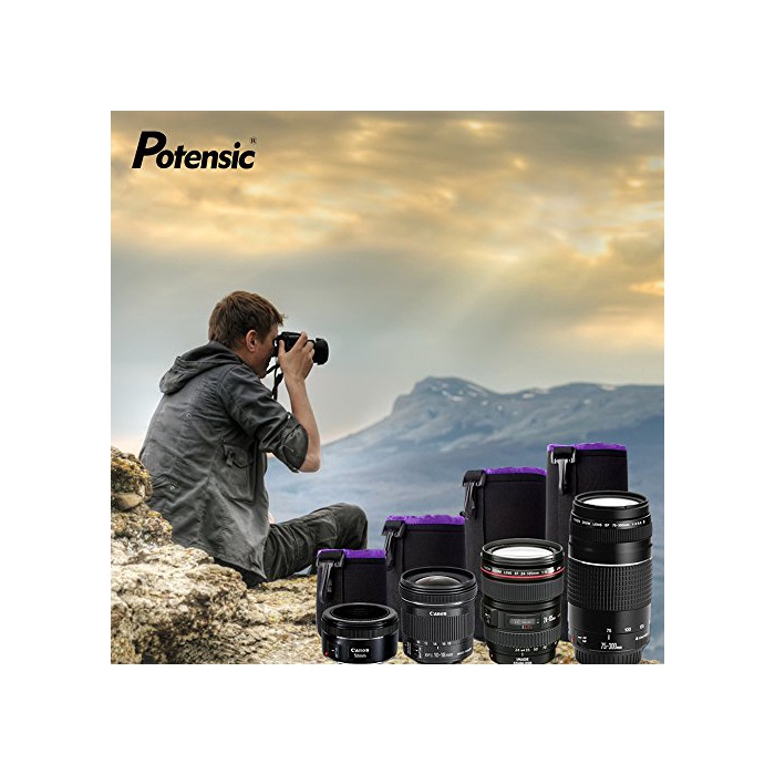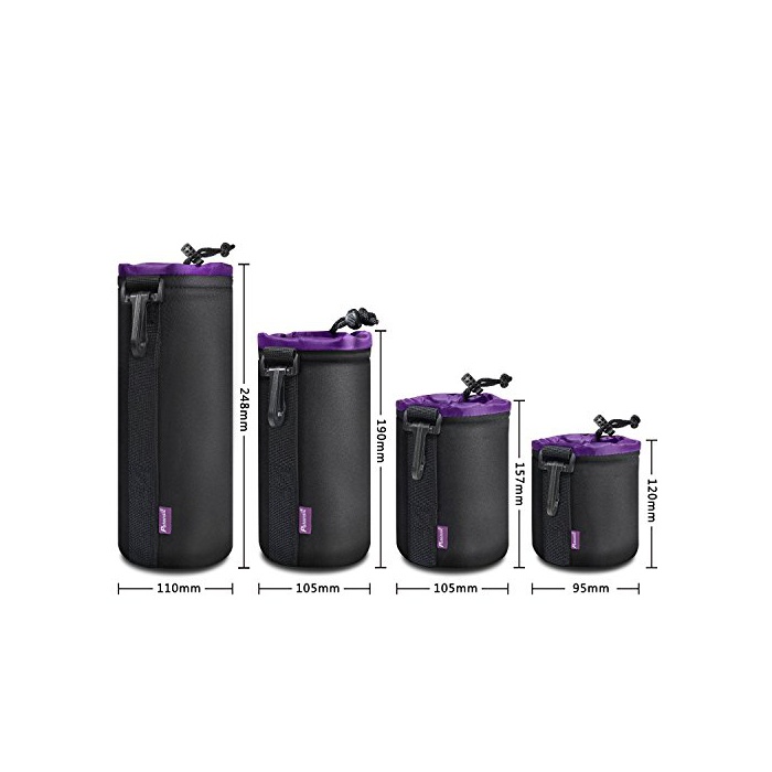 Potensic 소프트 일안레플렉스 카메라 렌즈 케이스 렌즈 파우치 카메라 소품 파우치 4사이즈 세트 flannel 훅부(블랙/퍼플)