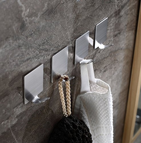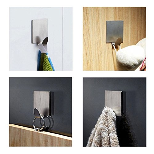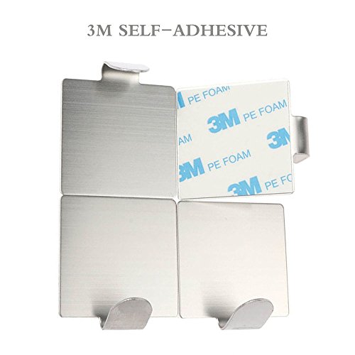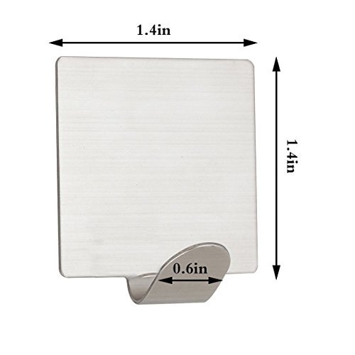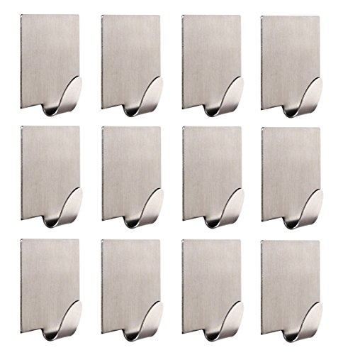 Neele 12PCS Self Adhesive Hook 3M Brushed 304 Stainless Steel Heavy Duty Coat Towel Hook for Bathroom Kitchen Toilet (Square)