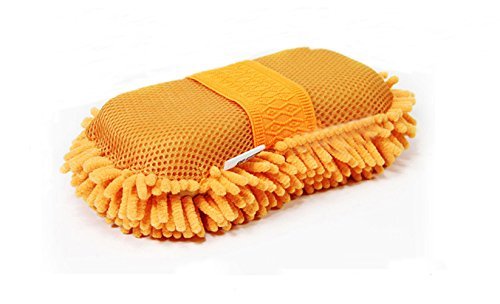 W-Tech Microfiber Absorbent Car Wash Clean Sponge Coral Chenille Fiber Car Wash Gloves with Elastic strap Hand Brush Sponge Pad Cleaning Tool