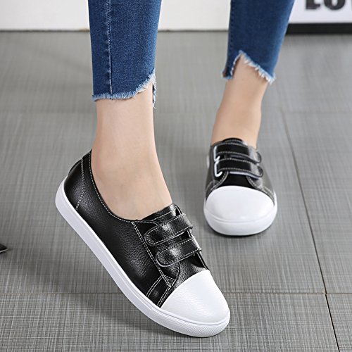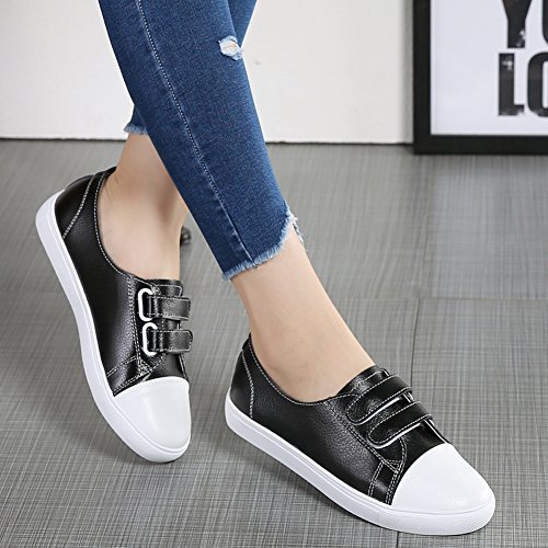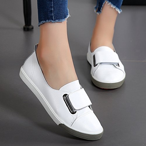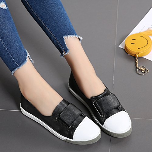 Binding : Apparel Product Description HKR Women Slip On Leather Hook-and-Loop Sneakers Casual Velcro Strap Shoes Comfort ctretch smooth leather upper and soft lining keeps feet cool dry. The velcro strap closure allows easy on / off for ease and fit adjustability. exquisited hand-stitched are boast excellent durability and construction you can trust A hook-and-loop closure on this slip on leather sneakers adds a touch of ease and contemporary interest. Flexible and non slip rubber outsole designed to follow the foot's natural movement extended Great for walking and other leisure activities, the HKR slip on leather sneaker with easy on/off hook and loop closure is designed to support your active lifestyle. You'll love the fashion and casual style of hook and loop sneakers. Size Tips 1. It is NOT STANDARD US SIZE. It is better to choose the size according to foot length 2. After measuring your feet length,please refer to our size chart to choose the US size 3. If foot is fat / width / high instep, it would be better to select half or one full size larger than normal size Size Chart US Size 5.5 B (M) US = Heel to Toe 8 7/8 inch (22.5cm) = China Size 35 US Size 6 B(M) US = Heel to Toe 9 inch (23cm) = China Size 36 US Size 6.5 B (M) US = Heel to Toe 9 1/4 inch (23.5cm) = China Size 37 US Size 7 B (M) US = Heel to Toe 9 1/2 inch (24cm) = China Size 38 US Size 7.5 B(M) US = Heel to Toe 9 5/8 inch (24.5cm) = China Size 39 US Size 8 B (M) US = Heel to Toe 9 7/8 inch (25cm) = China Size 40 0