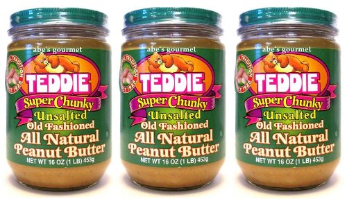 Teddie Super Chunky UNSALTED All Natural Peanut Butter (3 Pack) 16 oz Jars