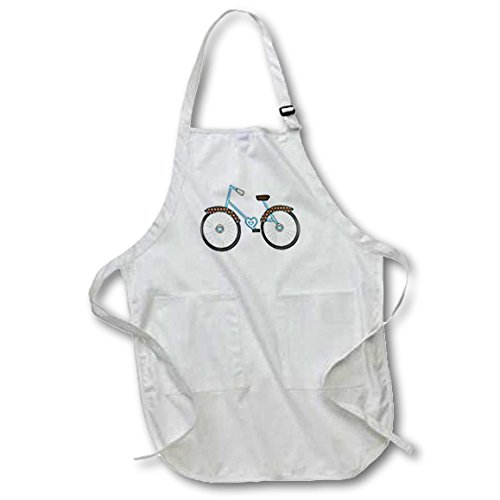 3dRose apr_210828_1 Cute Blue & Brown Heart Bike Illustration Full Length Apron with Pockets, 22 by 30", White
