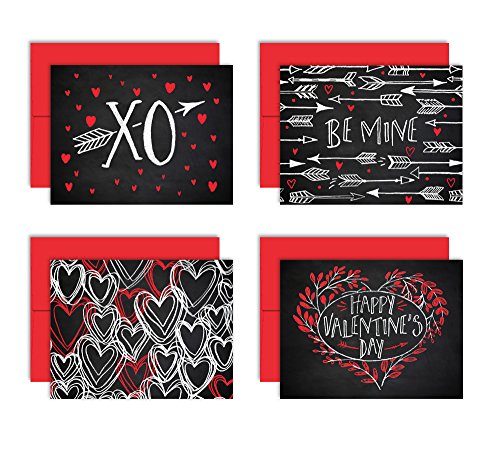 -. Title : Chalk Art Love Notes - Set of 8 Valentine's Note Cards + Red Envelopes - 4 Unique Designs - By Palmer Street Press