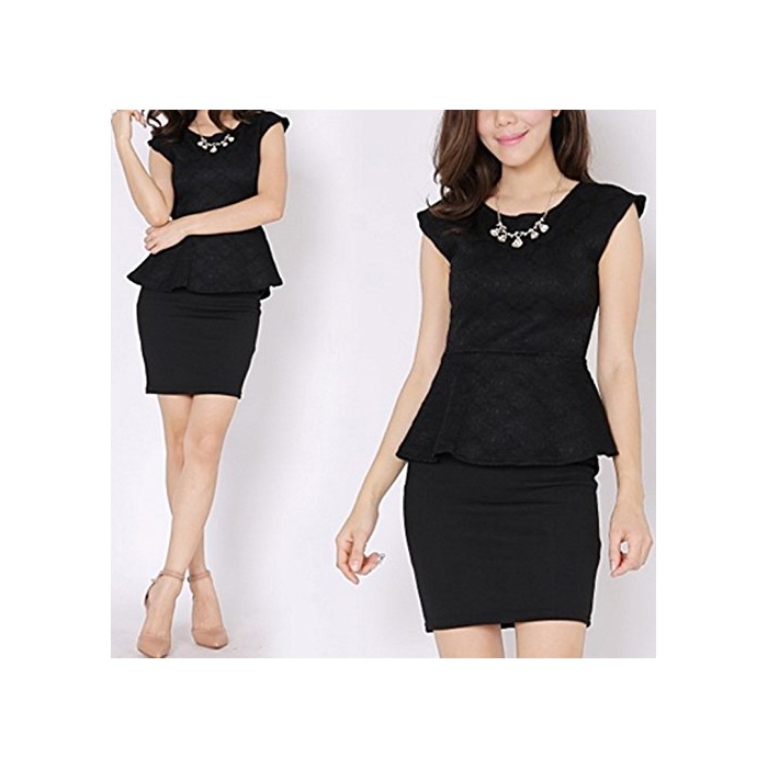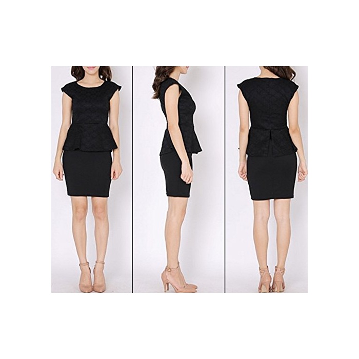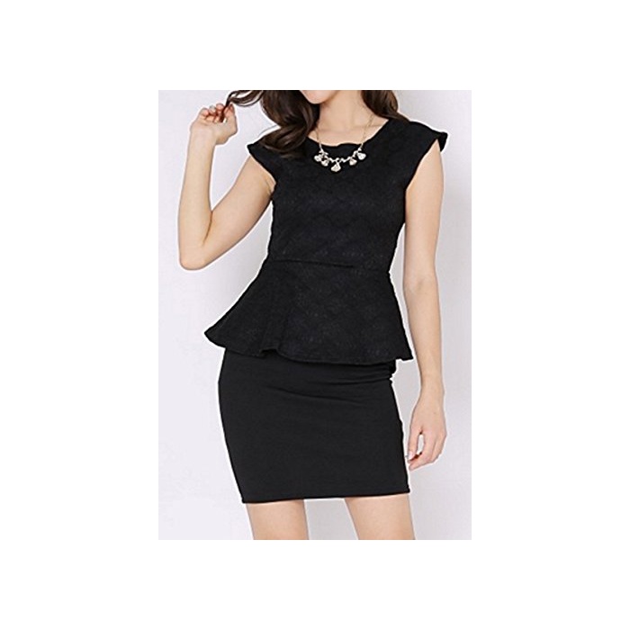 원본상품명: フォマル ワンピス 膝丈 ジャガド タイト ぺプラム スリム ノスリブ ミニ ワンピ