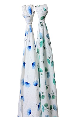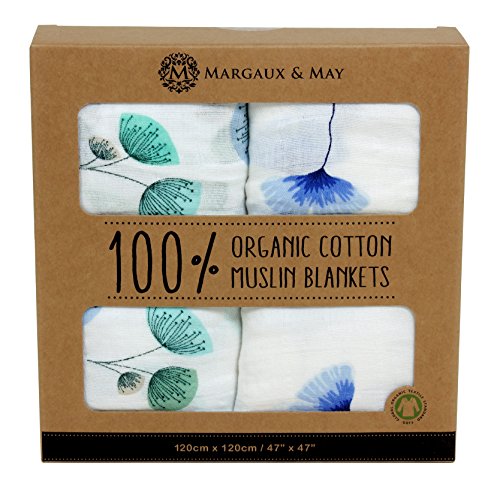 -. Title : Organic Muslin Swaddle Blanket - Margaux & May - X Large Swaddling Blankets - Ginkgo & Dandelion