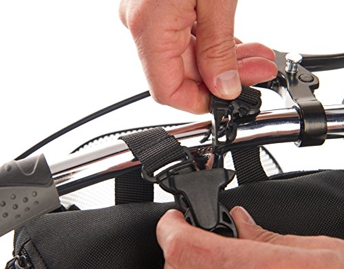 How to Attach to a Knee Walker: Place the mini pack either facing forward above the basket or facing toward you. While kneeling on the knee walker, take the right strap and loop it behind and over the handlebars, to the right of the steering column and press into the clip. Next take the left strap and loop it over the handlebars to the left of the steering column and press into clip. To remove, simply press both release buttons on the sides of the clip.