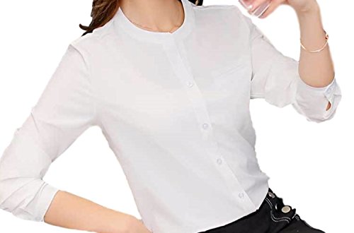 -. Title : (ソフケン) SOFUKEN まる 襟 バンド カラー 白 シャツ ホワイト オフィス フォーマル レディース ブラウス 大きい サイズ 無地 長袖 1.6.1.WT.2XL