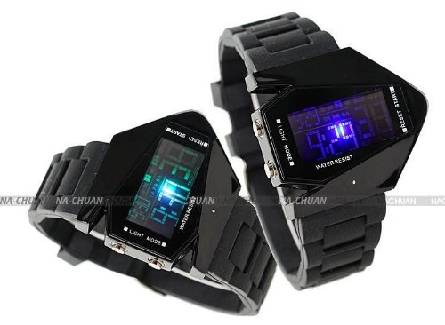 -. Title : AMPM24 Mens Sport Multicolor Blue LED Backlight Digital Date Alarm Black Rubber Watch LED034
