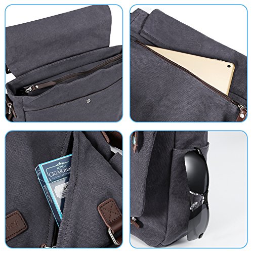 ibagbar Canvas Messenger Bag Shoulder Bag Laptop Bag Computer Bag Satchel Bag Bookbag School Bag Working Bag for Men and Women