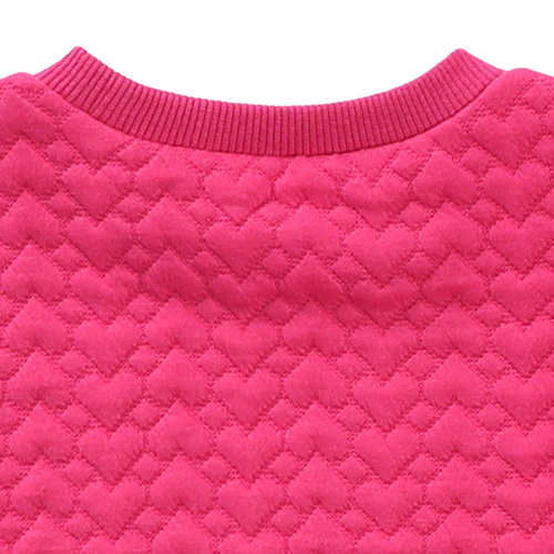 | 상품설명 | 하트 쟈가드 소재로 만들어진 핫핑크컬러의 맨투맨입니다. 입체감 있는 하트 모티브의 쟈가드 다이마루 소재로 만들어 포근하며 편안한 착용감을 줍니다. 네크라인과 소매에 립지를 넣어 활동성을 더해주었습니다. 캐주얼한 데님팬츠나 제깅스와 코디하기도 좋고 하트 쟈가드 치랭스와 세트로 코디하기도 좋습니다 |