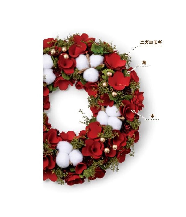 赤と白のコントラストが素敵なリース。