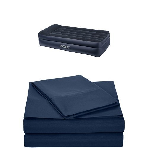 -. Title : Intex Pillow Rest Raised Airbed with Built-in Pillow and Electric Pump, Twin and AmazonBasics Twin Microfiber Sheet Set, Navy Blue