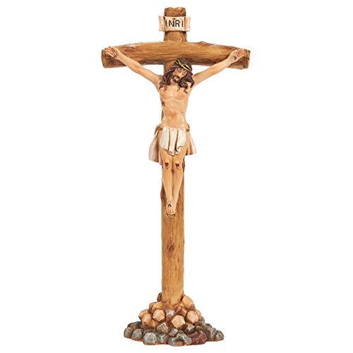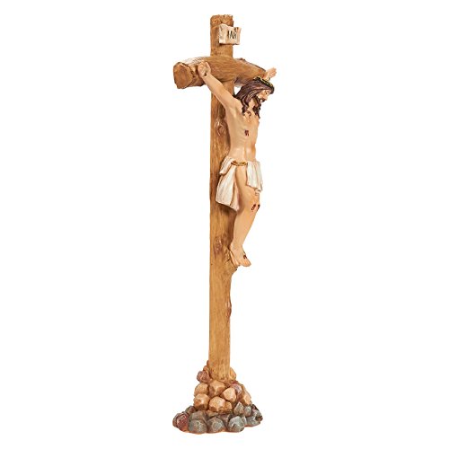 Jesus Cross Crucifix Figurine - Religious Resin Figure of Christ's Crucifixion, Catholic Holy Cross Decoration, 5.3 x 12 x 2.25
