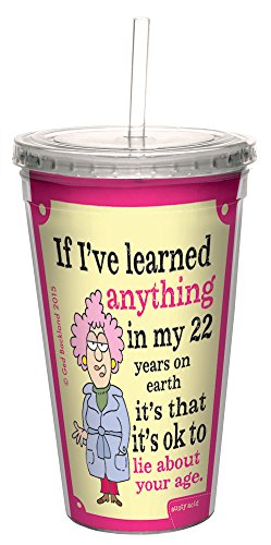Tree-Free Greetings 16-Ounce Cool Cup with Reusable Straw, Aunty Acid Lie About Your Age (CC98449)