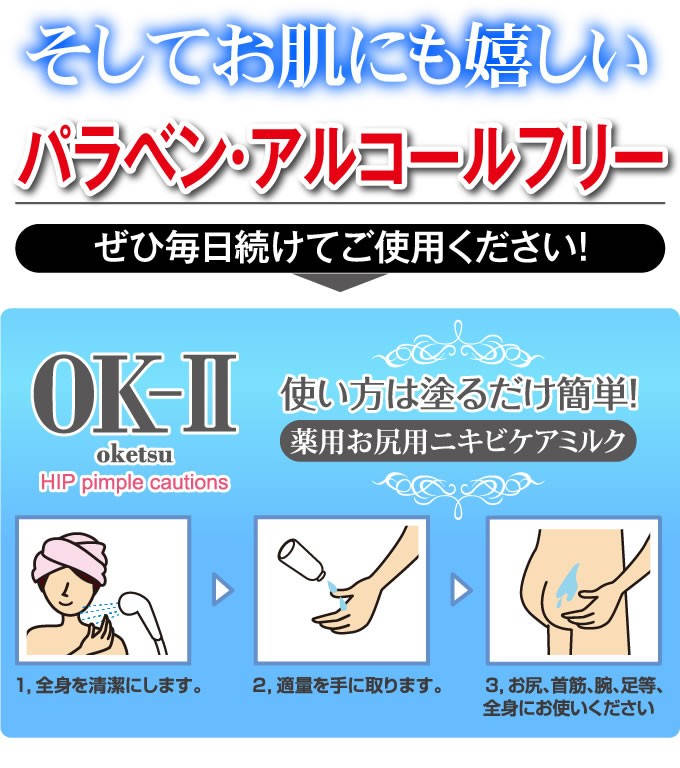 | ご使用方法 | 入浴などで全身を清潔にし、適量を手に取り臀部にご使用ください。全身の気になる部分にもご使用いただけます。 |
