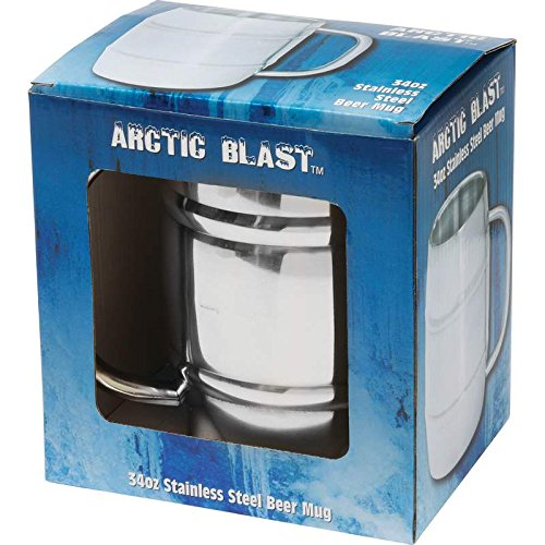 - The Arctic Blast 34oz Barrel-Shaped Stainless Steel Beer Mug double-wall construction keeps your drink cold!