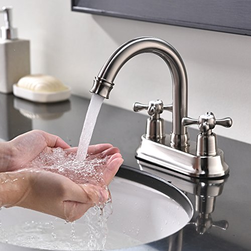 Shaco Best Commercial 2 Handle Widespread Brushed Nickel Bathroom Faucet,Stainless Steel Bathroom Sink Faucets