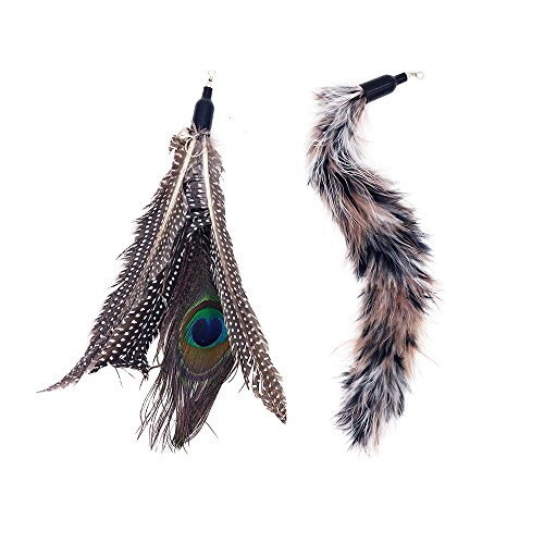 Cat Teaser Wand, Natural Feather Dangler Cat Toy on a 35-Inch Wand, with 3 Furry Feathers