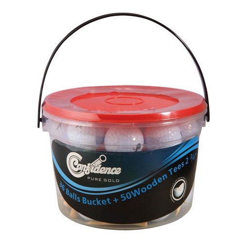 Studio : Confidence Golf Publisher : Confidence Golf Binding : Sports Product Description The Pure Gold golf ball from Confidence is a 2 piece ball built for distance. A durable dupont cover means great durability, and the 2 piece construction strikes a great balance between distance, feel and control. 36 brand new Confidence Pure Gold golf balls. 50 2 3/4" wooden golf tees, natural finish. 0