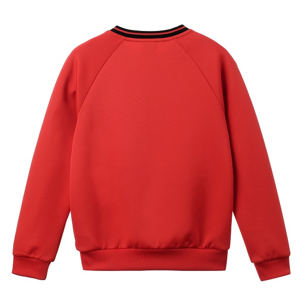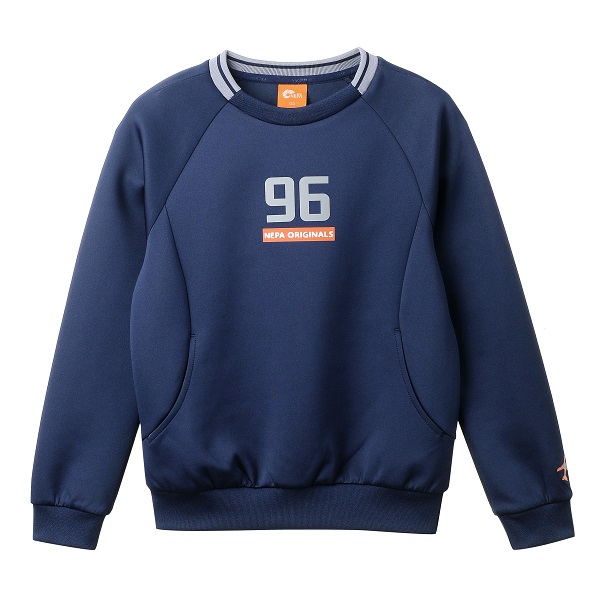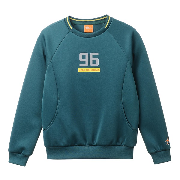 KEE6301과 세트 착장 가능 폴리 쿠션 소재의 맨투맨 스타일 넥 스트라이프 및 로고에 재귀반사가 포인트이며 손목에는 시즌 모티브인 비행기 자수가 있음 핸드포켓 안쪽에만 컬러배색을 주어 은은하게 포인트를 줌