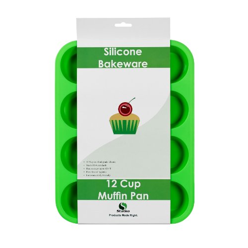 Statko 100% Pure Food Grade Silicone Muffin Pan, 12 Cup
