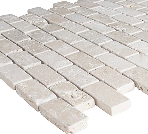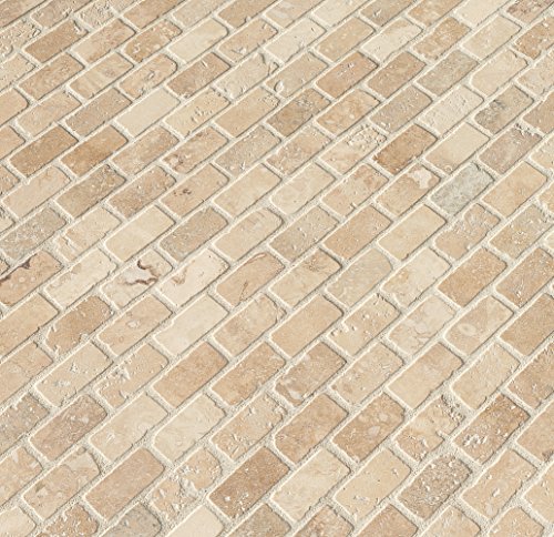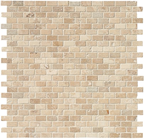 M S International Tuscany Beige Brick 12 In. X 12 In. X 10 mm Tumbled Travertine Mesh-Mounted Mosaic Tile, (10 sq. ft., 10 pieces per case)