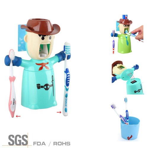 Ecoco 3 in 1 Love's Warriors Toothbrush Holders,automatic Toothpaste Dispenser and Brushing Cup Set,novel Amazing Birthday's Gifts for Kids and Your Best Friends - Cowboy (Yellow)
