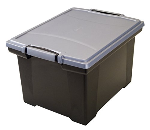 Storex Utility Tote with Locking Handles, 18.5 x 14.25 x 10.88 Inches, Silver/Black, Case of 2 (STX61545B02C)