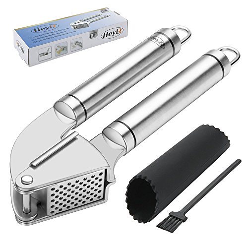 PREMIUM QUALITY - The professional garlic press is made of 100% STAINLESS STEEL, therefore it will not peel off, fall apart or rust.