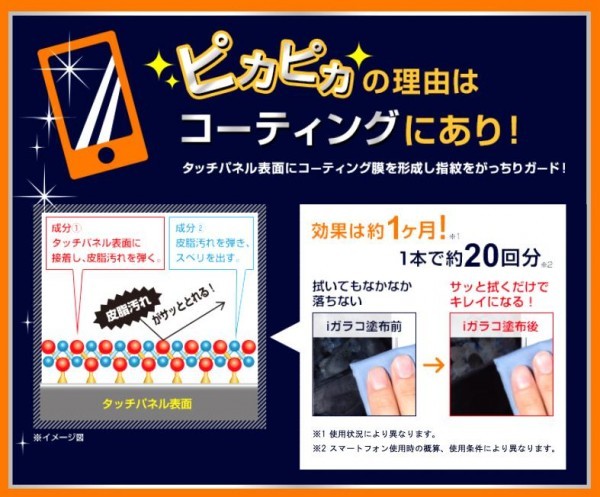 タッチパネル表面にコーティング膜を形成し、指紋をがっちりガード! |