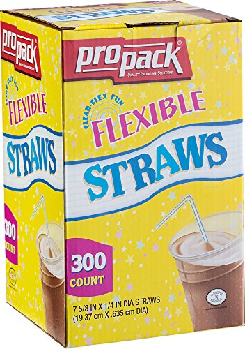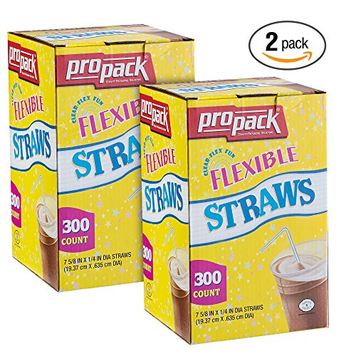Propack Flexible Straws 300 Count Disposable Drinking Straws, Pack of 2 (600 Straws Total)