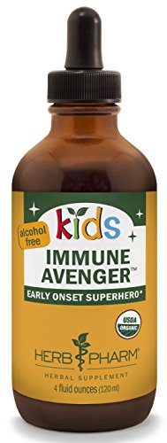 Herb Pharm Kids Certified-Organic Alcohol-Free Immune Avenger Herbal Formula supports children’s response to immune system distress. This multi-tasking formula is prepared from certified organic herbs harvested at their peak of potency. Herb Pharm individually extracts each herb prior to blending to provide a broad spectrum of immune-responsive plant compounds. Easy-to-follow dosing instructions based on body weight are included; simply add drops to a small amount of water or juice at the first sign of symptoms. The experts at Herb Pharm select only those herbs that time and experience have proven safe and effective for children. Herb Pharm Kids Certified-Organic Alcohol-Free Immune Avenger Herbal Formula, like all Herb Pharm Kids’ herbs, is recommended Aviva Romm, MD, an internationally-respected expert in botanical and integrative medicine for women and children.Feature