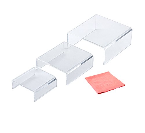 Smart and simple acrylic display risers to add height to your displays. The see-through design displays your items without detracting attention.