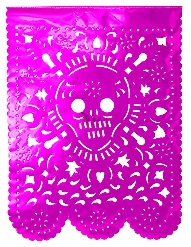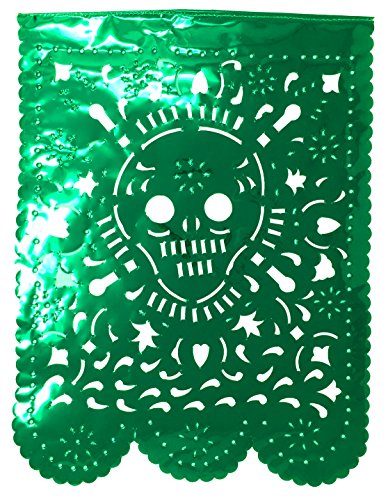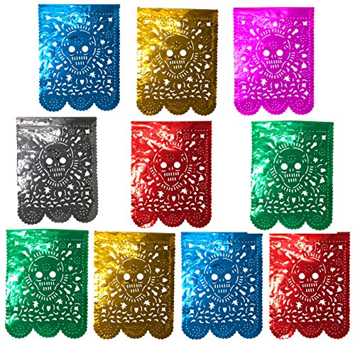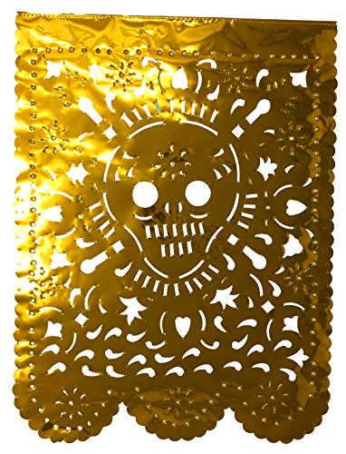 Tio Chente's Metallic Day of the Dead Papel Picado Paper Banner with 10 Vertical Panels - Great for Mexican Party Fiesta Decorations