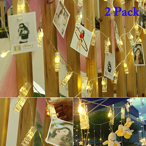 Vmanoo String Lights Battery Powered, 30 LED 12 Feet Photo Clips Lighting Ideal for Hanging Picture Cards and Memos, Home Bedroom Wedding Party Decoration, Valentines Gift, 2PACK (Warm White)
