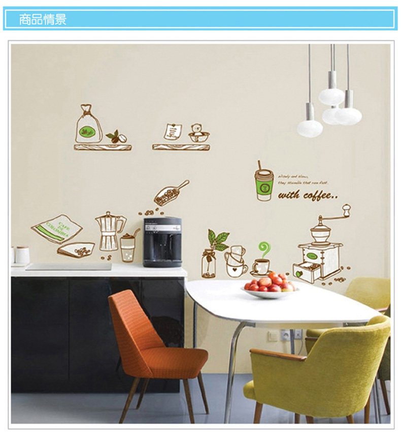 可移除墙贴纸贴画餐厅厨房瓷砖墙壁磨咖啡餐具饮料物品分类贴创意
