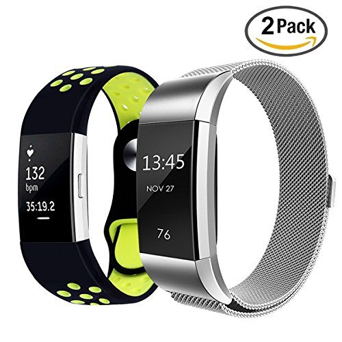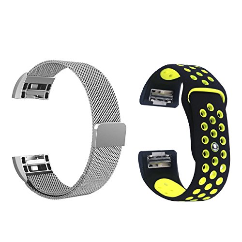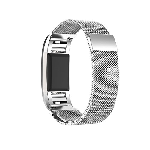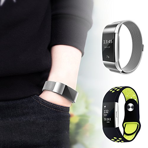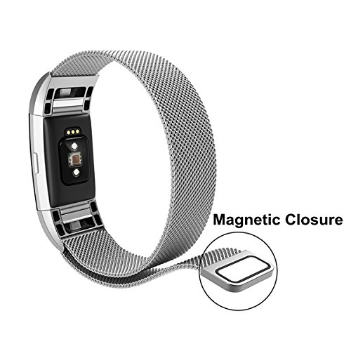 Fitbit Charge 2 Band Milanese Loop Stainless Steel Bracelet Strap With Unique Magnet Lock+Soft Silicone Adjustable Fashion Sport Strap for Fitbit Charge2