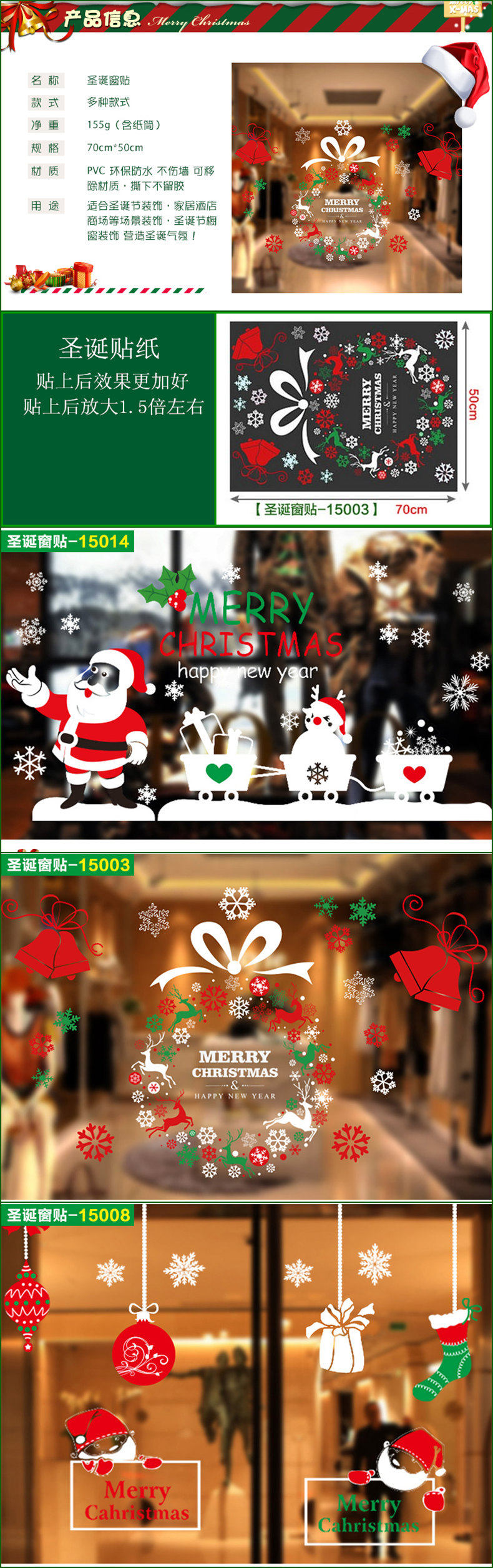 圣诞节窗贴 玻璃贴纸 圣诞装饰品 窗户雪花字母 橱窗布置窗花贴画