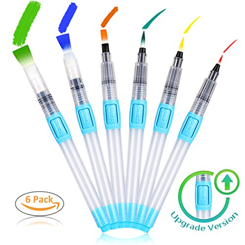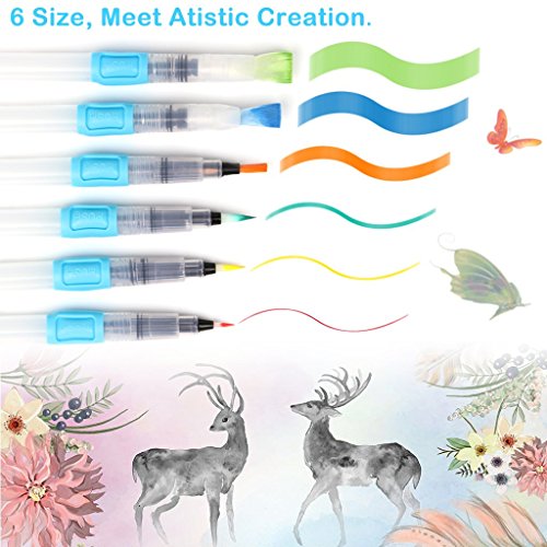 ❤SET MULTI-SIZE BRUSHES--Different sizes of water brush pens allow for fine artwork to be done. 3 point tip brushes and 3 flat tip brushes (Small, Medium, Large). Great idea to be create your own colors.