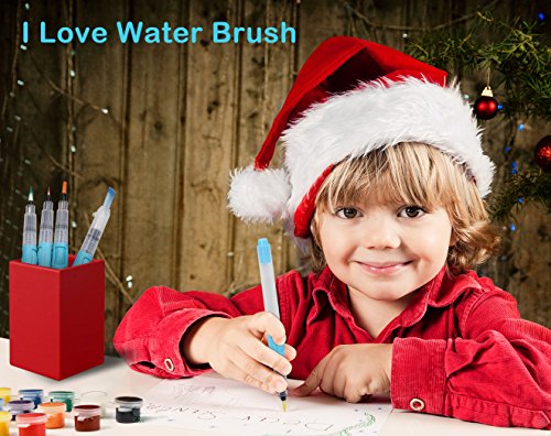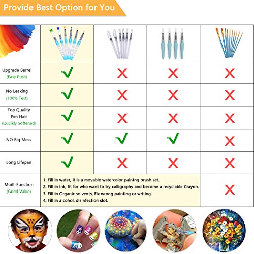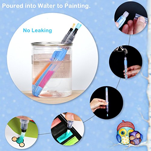 ❤NO SPILLS NEVER LEAKING--All you do is fill water in watercolor brushes pens and squeeze the body to wet the watercolor brushes pens . The great nylon material keeps the brush moist and does not leak. This is one terrific set of leak-proof (YES, LEAK-PROOF) Brushes. No more messy spills or muddied colors!