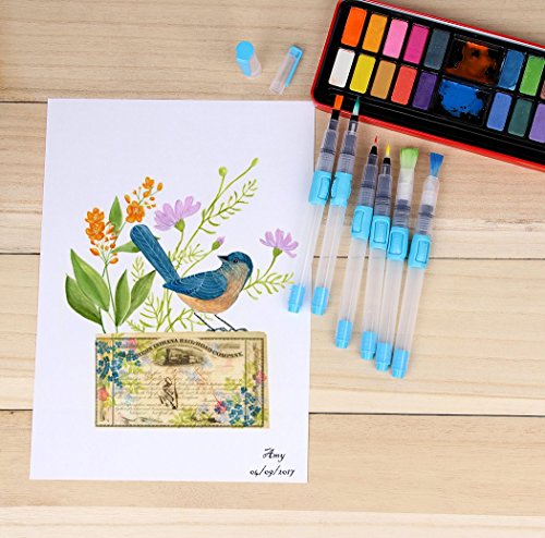 ❤BETTER CONTROL OF WATER--Blue soft plastic on brush pens design easy to squeeze, promote smooth art painting. Highest quality nylon hair brush tips, so they stay in tact as not to spread, spray, or smear while in use.