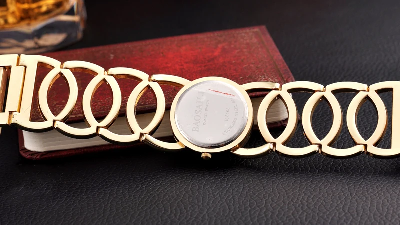 BAOSAILI ?Brand Imitation Gold Plated Circles Strap Stainless Steel Back Shinning Women Watches Fashion Wrist Watch?